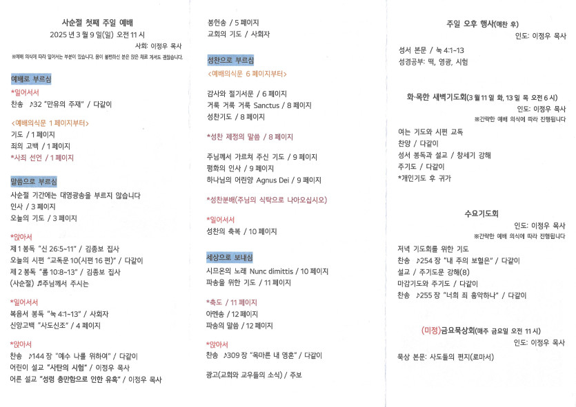 2025년 3월 9일 주보 작성자 정보 담임목사 작성 작성일 2025.03.15 17:59 컨텐츠 정보 899 조회 목록 본문 사순절 첫째 주일 SNS 공유 관련자료 이전 2025년 3월 16일 주보 작성일 2025.03.18 14:11 다음 2025년 3월 2일 주보 작성일 2025.03.06 12:33 댓글 0 등록된 댓글이 없습니다. 로그인한 회원만 댓글 등록이 가능합니다. 목록