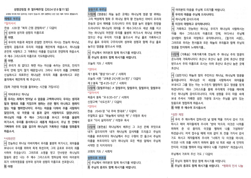 2024년 8월 11일 주보 작성자 정보 담임목사 작성 작성일 2024.08.16 19:47 컨텐츠 정보 1,086 조회 목록 본문 성령강림일 후 열두째 주일 주보 SNS 공유 관련자료 이전 2024년 8월 18일 주보 작성일 2024.08.21 13:26 다음 2024년 8월 4일 주보 작성일 2024.08.07 19:07 댓글 0 등록된 댓글이 없습니다. 로그인한 회원만 댓글 등록이 가능합니다. 목록