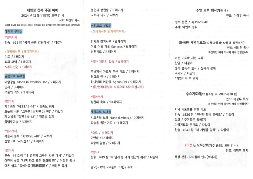 2024.12.1.주보 작성자 정보 담임목사 작성 작성일 2024.12.02 21:29 컨텐츠 정보 1,025 조회 목록 본문 대림절 첫째 주일 SNS 공유 관련자료 이전 2024년 12월 8일 주보 작성일 2024.12.10 22:47 다음 2024년11월24일 주보 작성일 2024.11.25 13:21 댓글 0 등록된 댓글이 없습니다. 로그인한 회원만 댓글 등록이 가능합니다. 목록