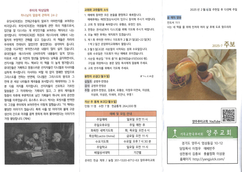 2025년2월16일 주보 작성자 정보 담임목사 작성 작성일 2025.02.17 20:09 컨텐츠 정보 971 조회 목록 본문 주현일 후 여섯째주일 SNS 공유 관련자료 이전 2025년 2월 23일 주보 작성일 2025.03.01 21:11 다음 2025년 2월 9일 주보 작성일 2025.02.09 21:11 댓글 0 등록된 댓글이 없습니다. 로그인한 회원만 댓글 등록이 가능합니다. 목록