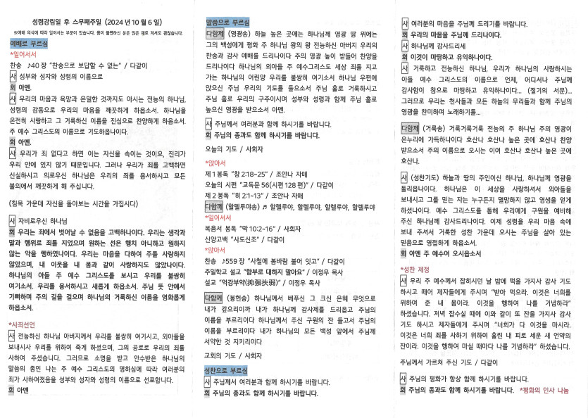 2024년 10월 6일 주일주보 작성자 정보 담임목사 작성 작성일 2024.10.08 14:31 컨텐츠 정보 1,295 조회 목록 본문 성령강림일 후 스무째주일 SNS 공유 관련자료 이전 2024년 10월 13일 주일주보 작성일 2024.10.16 15:40 다음 2024년 9월 29일 주보 작성일 2024.10.01 22:07 댓글 0 등록된 댓글이 없습니다. 로그인한 회원만 댓글 등록이 가능합니다. 목록