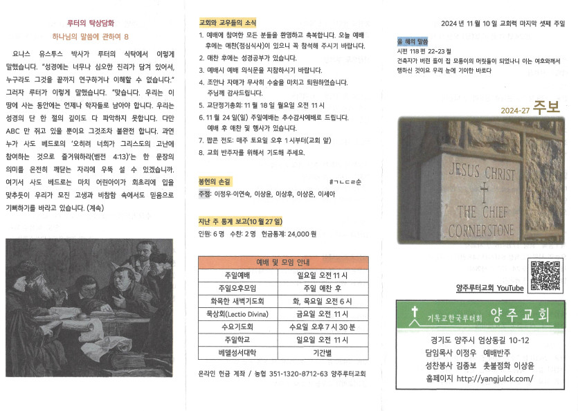 2024년 11월10일 주보 작성자 정보 담임목사 작성 작성일 2024.11.12 16:16 컨텐츠 정보 1,221 조회 목록 본문 교회력 마지막 셋째 주일 SNS 공유 관련자료 이전 2024년 11월 17일 주보 작성일 2024.11.17 20:22 다음 2024년 11월 3일 주보 작성일 2024.11.04 22:38 댓글 0 등록된 댓글이 없습니다. 로그인한 회원만 댓글 등록이 가능합니다. 목록