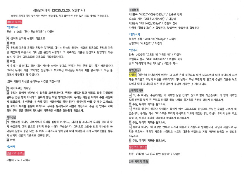 2025년 12월 25일 주보 작성자 정보 담임목사 작성 작성일 2025.12.29 00:17 컨텐츠 정보 303 조회 목록 본문 성탄절 SNS 공유 관련자료 이전 2025년 12월 28일 주보 작성일 2025.12.29 00:21 다음 2025년 12월 21일 주보 작성일 2025.12.28 23:58 댓글 0 등록된 댓글이 없습니다. 로그인한 회원만 댓글 등록이 가능합니다. 목록