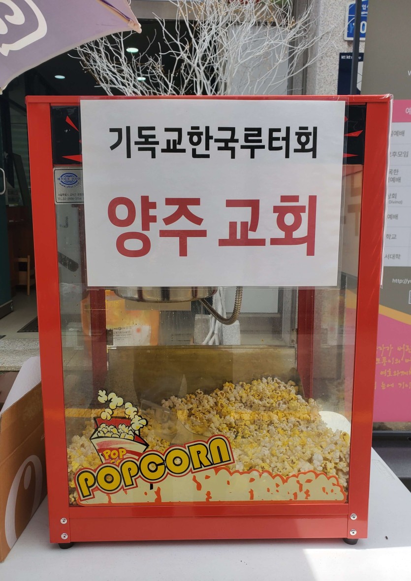이번 주 토요일 4월 18일 오전 11시부터 이웃과 함께 팝콘을 나누며 교회를 알립니다.
